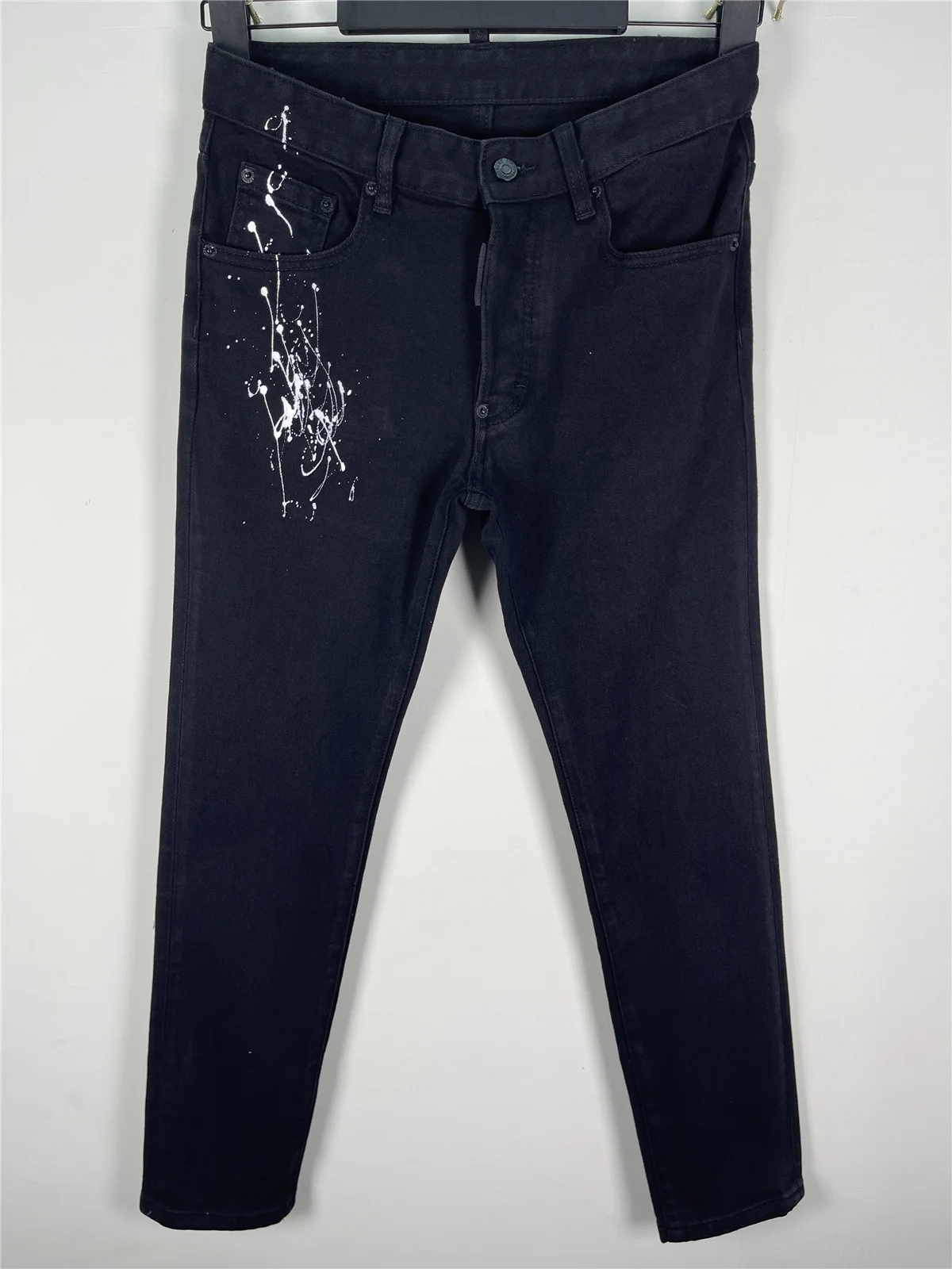 2025 가을 신상 D2 청바지 남성 패션 피어싱 패치 워싱 슬림핏 마이크로 엘라스틱 팬츠