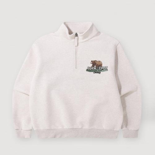 [지프]JQ4TSU844 멜란지베이지 남녀공용 본투비프리 베어 하프집업 맨투맨