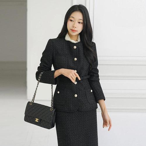 [스타일온미][스타일온미] 니켈로 벨트set 진주 버튼 펄 블렌딩 트위드 자켓