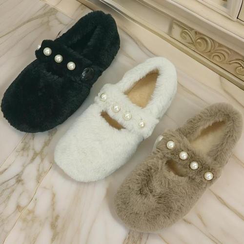 [애슬릿] 안감 털 여성 진주 버클 스트랩 블로퍼