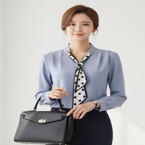 [에이샵][에이샵] 진주 버튼 도트 타이 블라우스_ASBL077F25