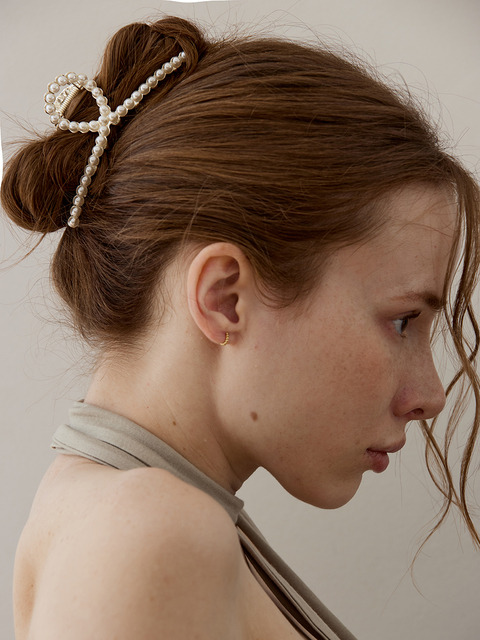 [신상오픈런]여성 진주 장식 리본 포인트 똥머리 헤어집게핀 (33138724)