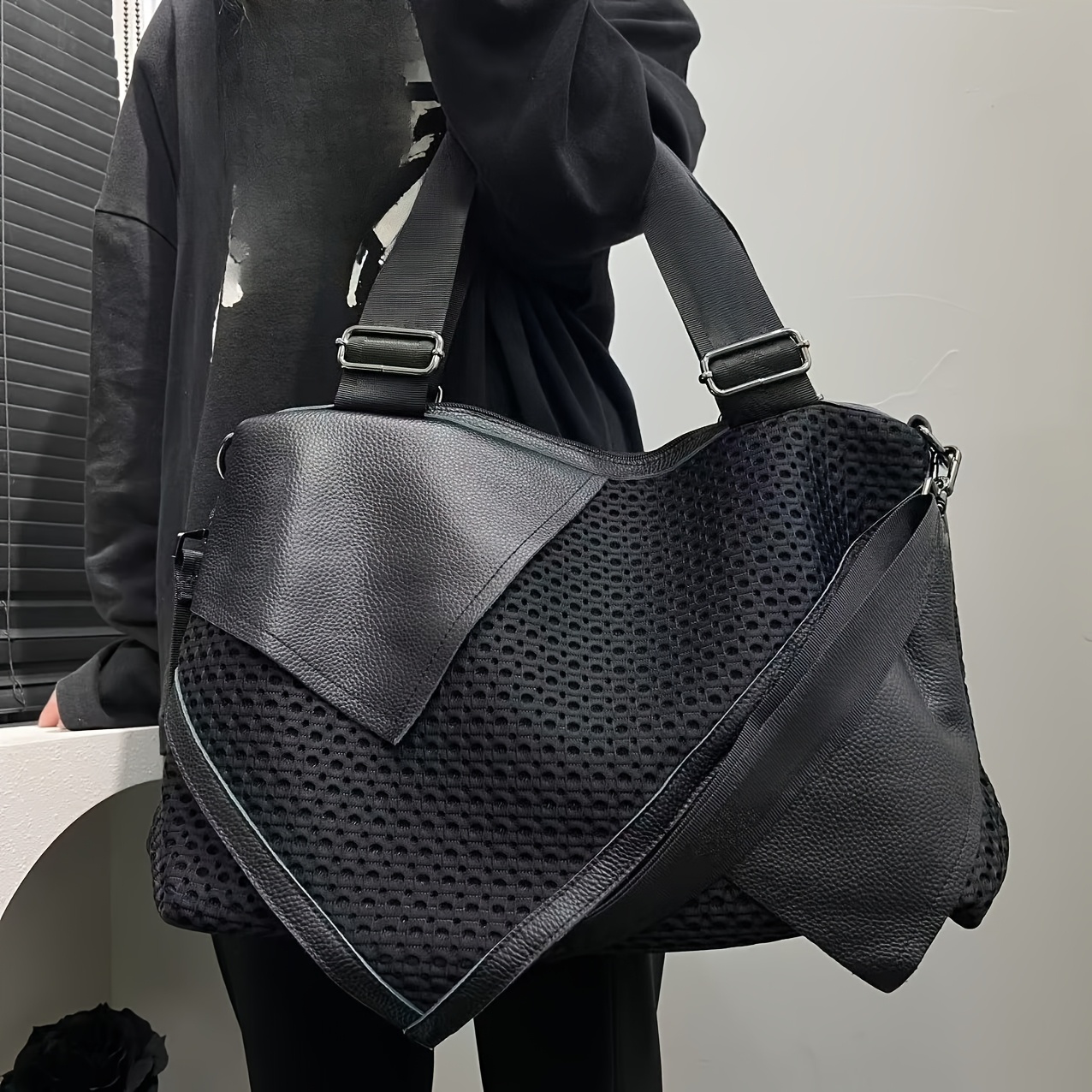 TEMU 여성용 Y2K 레트로 아방가르드 크로스바디 토트백 - 블랙 나일론 멀티포켓 핸드백, 탈착 가능한 스트랩, 대용량, 출근/출퇴근/데이트/파티용, 스트리트웨어 액세서리, 고품질 안감, 지퍼 클로저, 패션 애호가를 위한 가방