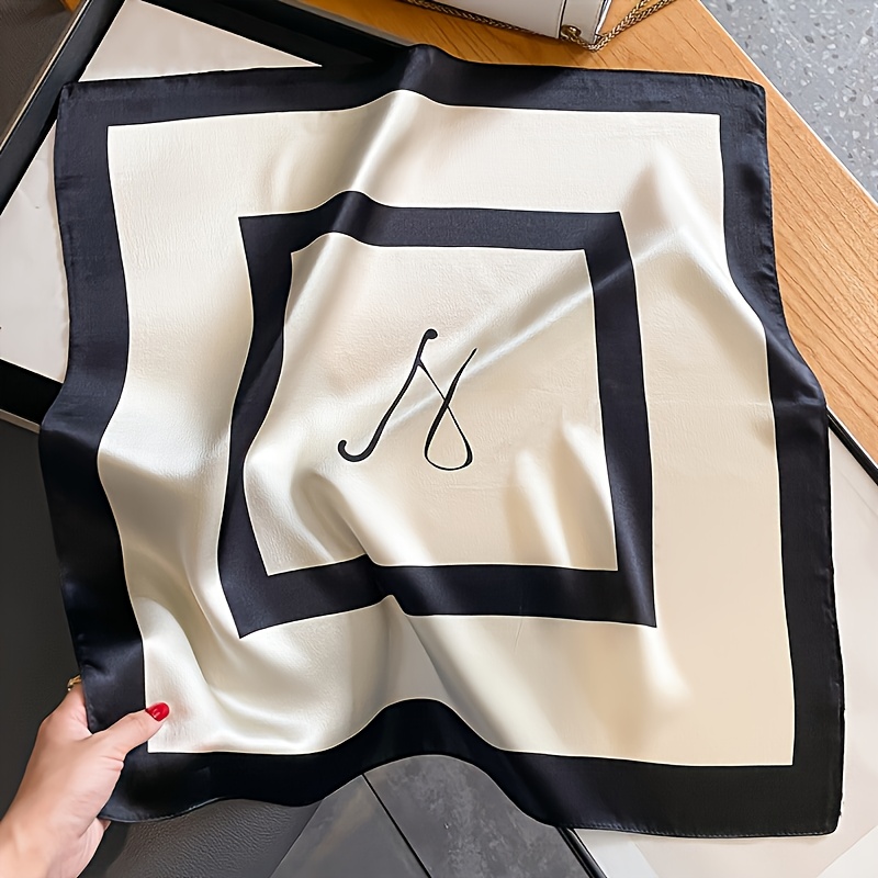 TEMU 우아한 새틴 스카프 - 다용도, 통기성 좋고 스타일리시한 일상 착용 또는 선물용, 블랙 & 화이트 디자인, 캐주얼 외출에 완벽, 캐주얼 액세서리 | 클래식 패턴 | 새틴 마감, 여성용 블랙 스카프, 여성용 스카프, 여성용 우아한 스카프, 겨울용 여성용 스카프, 여성용 스카프, 여성용 샤울, 여성용 스카프, 여성용 겨울 스카프
