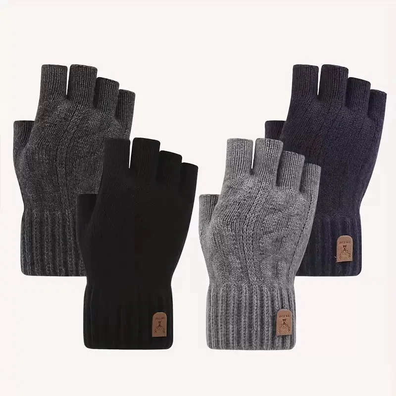 남성용 겨울 장갑 반손가락 글쓰기 사무실 사이클링 니트 장갑 학생용 알파카 울 따뜻하고 두꺼운 탄력성 운전 장갑