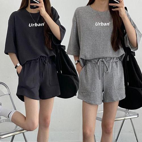 여성 반팔 반바지 트레이닝 세트 URK313 오버핏 트레이닝 홈 집업 WFIX5ZQ