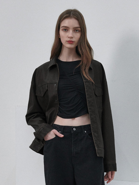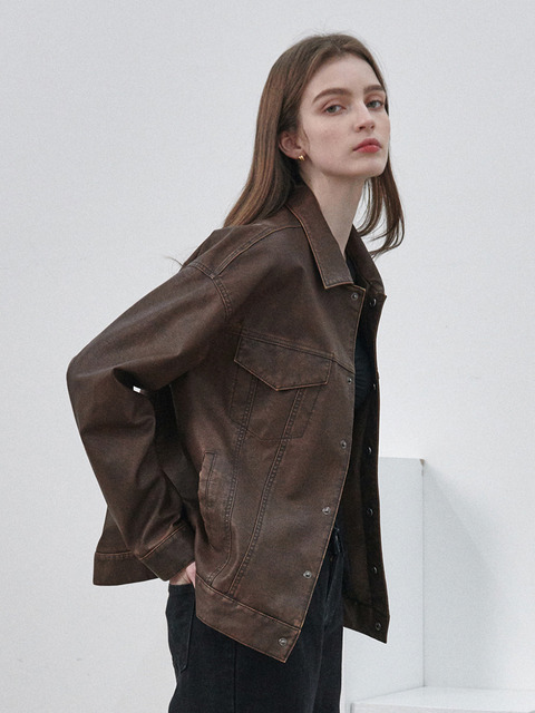[레프트서울] 신세틱 레더 워싱 진 자켓 [브라운]