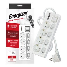 에너자이저 고용량 멀티탭 개별스위치 과부하차단 슬림 납작 화이트 6구 4M