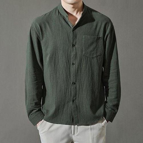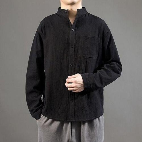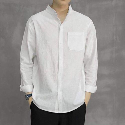 [에이치플러스몰]남성 여름 셔츠 린넨 긴팔 셔츠 얇은 차이나카라 셔츠