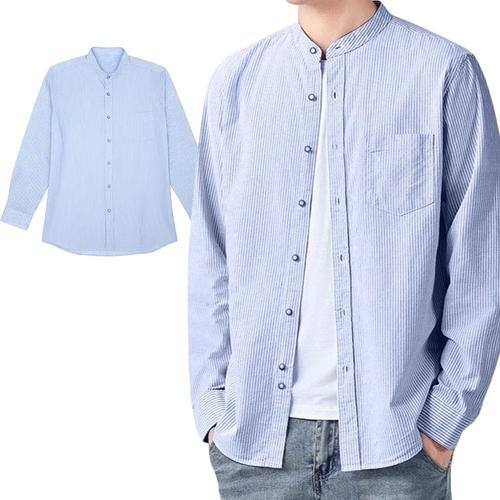 [오너클랜]인기상품 남성 슬림핏 스트라이프 차이나 셔츠 무카라 넥 블루 [WFKQ1LA_260412]