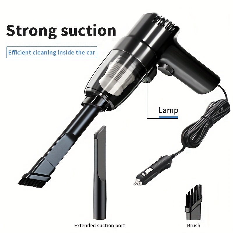 TEMU 고출력 청소용 고양이 털 및 애완동물 털 제거 차량용 진공청소기, 강력한 흡입력 LED 램프 다기능 휴대용 소형 12V 자동차 청소기