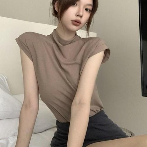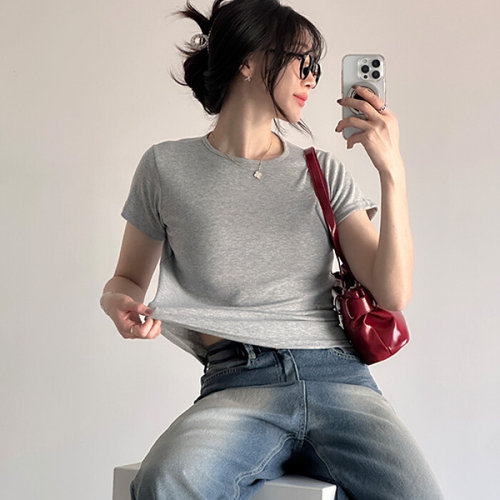 [신상오픈런]여자 무지컬러 여리핏 반목 찰랑 반팔 티셔츠