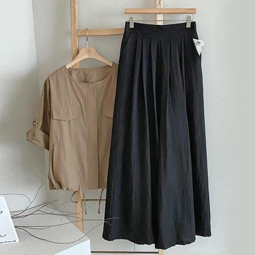 코욜하우키 1+1 여성 여름 플리츠 밴딩 와이드 팬츠 냉장고 바지 세트