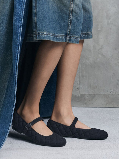 [찰스앤키스] 카멜 펠트 퀼티드 버클 메리제인 플랫