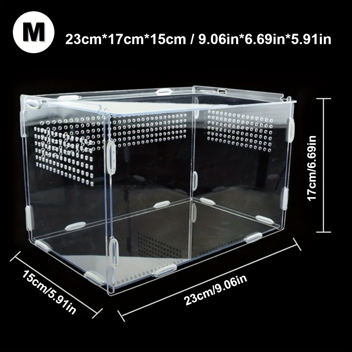 TEMU 투명한 사각형 파충류 서식지 - 도마뱀, 거북이, 거미 및 개구리용 통기구 구멍과 쉬운 접근문이 있는 작은 애완동물 우리, 통풍 메쉬 디자인의 파충류 액세서리