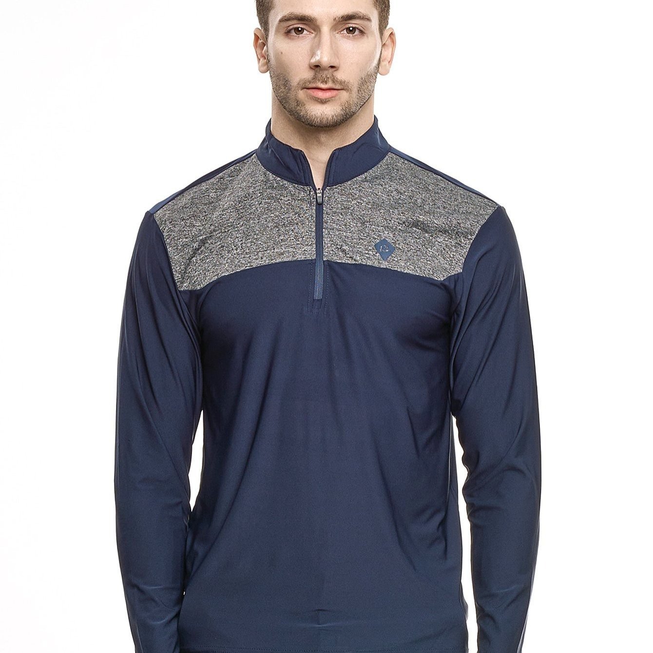 TEMU 남성 봄 가을 배색 멜란지 긴팔 집업 티셔츠 오션블루(M5ST21)