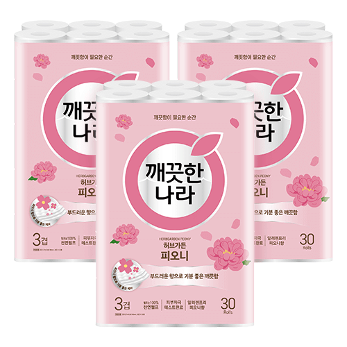 ★게릴라특가!최초!최저100개만!★ 깨끗한나라 2025 NEW 허브가든 피오니 프리미엄 30롤x3팩