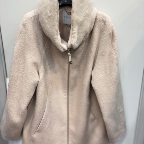 [크로커다일레이디]천연모피 넥밴드 모직 코트 베이지