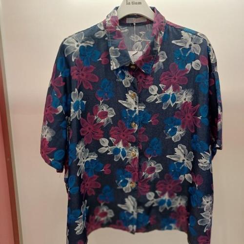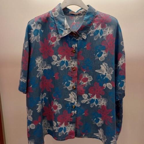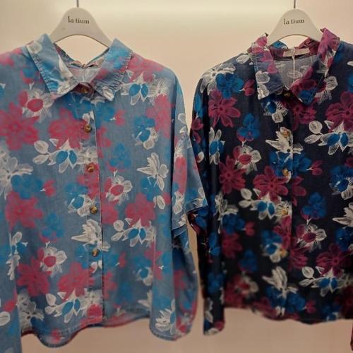 [라티움]Latium HC06 데님 루즈핏 크롭 큰꽃 얇은 여름 반팔 청남방 셔츠블라우스 T2623bl08 (49190165)