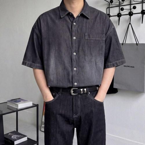 [모노폴로지]여름 오버핏 청남방 청반팔 캐주얼 워싱 얇은 스냅버튼 원포켓셔츠 2color