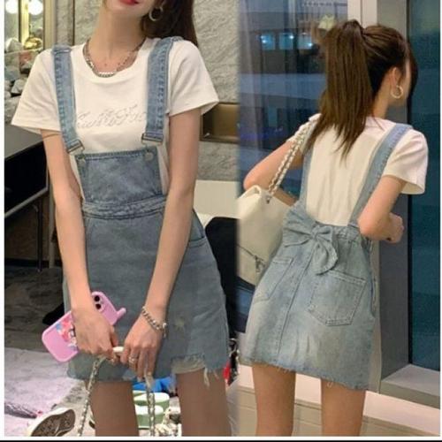 데일리룩 코디 멜빵 진청 치마 캐주얼 공항 여행 패션 WD54862