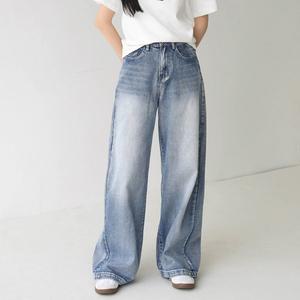 [다잇템]여자 세미와이드 자수 단추없는 백밴딩 청바지