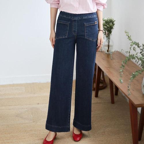 [옷자락] 여자 캐주얼 핀턱 스냅버튼 밴딩 와이드 데님