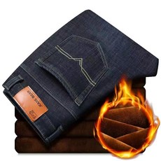 남성 데님 팬츠 가을 겨울 캐주얼 빅사이즈 기모 도톰 청바지 캐주얼 스판 일자 남자 바지 SJS