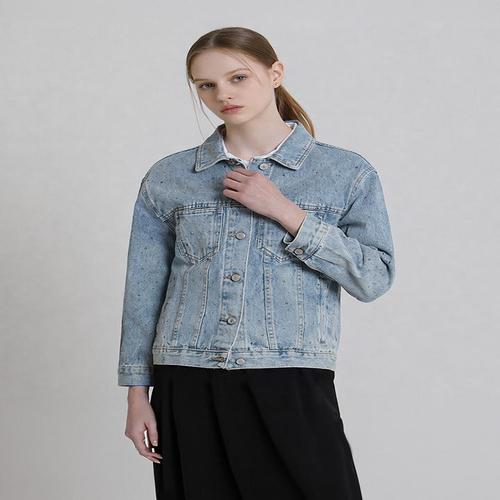 [아날도바시니][아날도바시니(ARNALDO BASSINI)] 큐빅 스탠카라 데님자켓 (택가격 258000원)