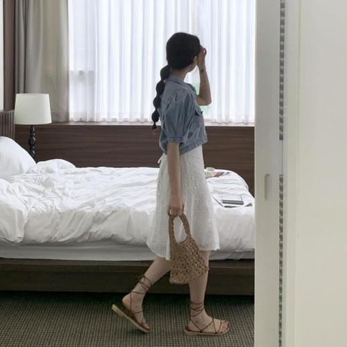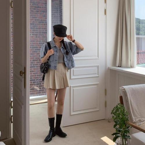크롭청자켓 여름 여자데님코디 퍼프 반팔 재킷