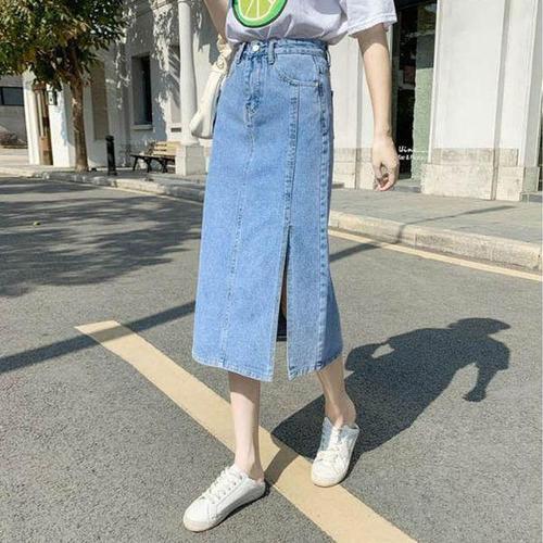 여성 청치마 뒷트임 롱 데님 스커트 데일리 패션 웨어