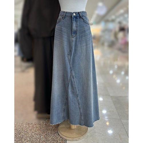 [브리치] / 2기장 A라인 밴딩 워싱 롱 데님 스커트(SK2508)