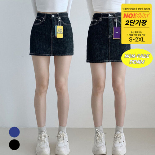 포인 / 키치/2단기장/물빠짐X 논페이드 미니 데님스커트(속바지안감) 2color