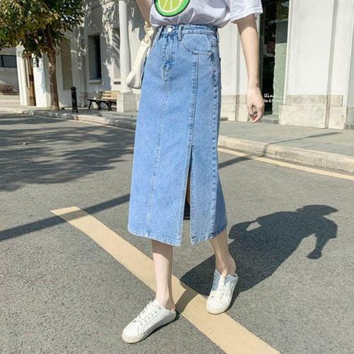 봄패션 앞트임 롱스커트 스커트 청치마 롱데님 롱 앞 WD5483B