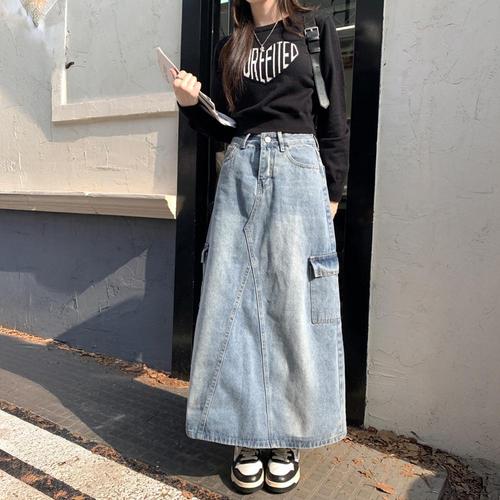 여성 스커트 봄 가을 롱 데님 하이웨스트 청치마