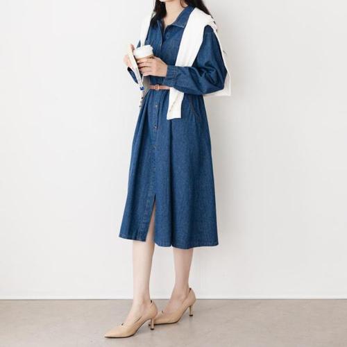 [신상오픈런]|KDO477C|에크로 카라셔츠 미니멀 스프링 여성 청 긴원피스 데님_18170685_597559