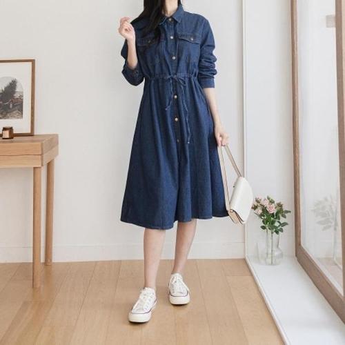 [신상오픈런]|CCO4748|스레매 캐주얼 플레어 데일리 여성 청 카라 스프링 원피스_18170699_597559