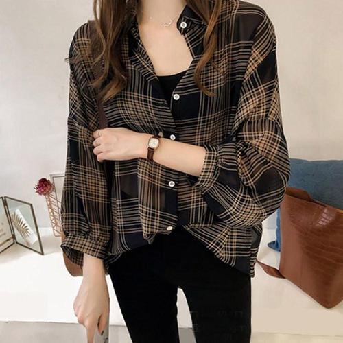 여리여리한 체크 포인트 루즈핏 러블리 여성 블라우스 WAE0E55