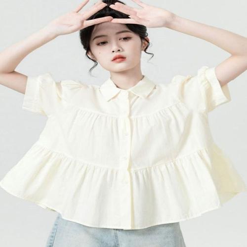 [엄지척]러블리 여성 크롭 셔츠 포켓 여자 블라우스_19660404_667501