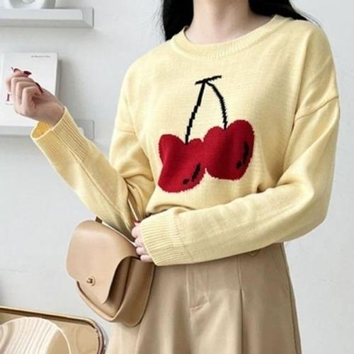 [에이치플러스몰]귀여운니트 여자 웨어 라운드티 체리니트 러블리