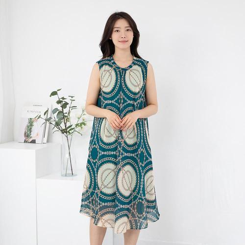 [모슬린]엄마옷 체인 라운드 쉬폰 나시 롱 원피스 613FGH447 마담중년여성빅사이즈50대60대