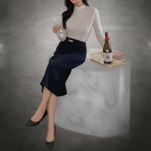 양놀 오피스룩 뒷트임 스판 H라인 롱 스커트