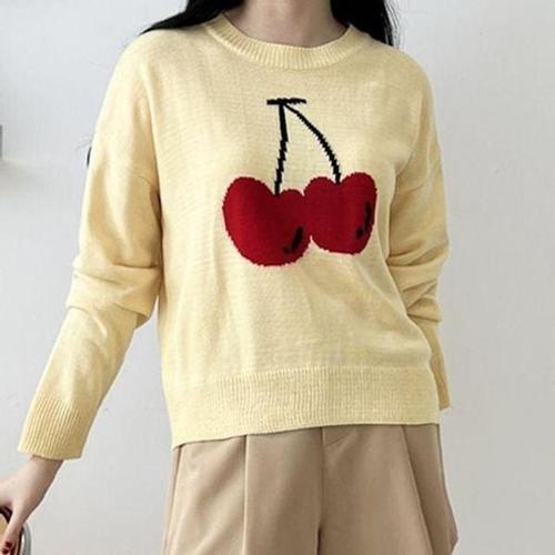 [라일리여성의류] Rly 체리 여성 니트 겨울 가을 여자 라운드 니트티