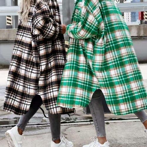 여성 봄 가을 박시 체크 롱 셔츠 긴팔 남방 NB0092S 빅사이즈 루즈핏