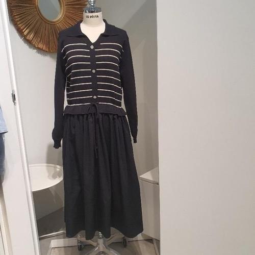 르피타 HC06 내추럴 스트라이프 셔링 롱 원피스(블랙) 내추럴 스트라이프