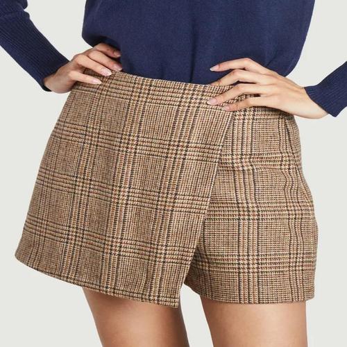 여성 체크패턴 H라인 울 미니스커트 WFK5OZV