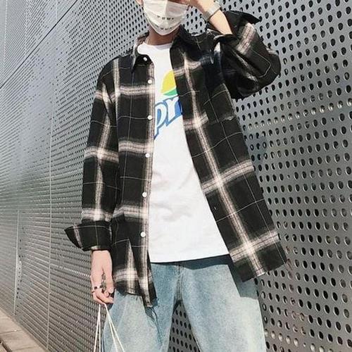 봄 가을 남성 긴팔 셔츠 남방 캐주얼 얇은 아우터 루즈핏 긴팔티 남여공용 체크 남방 JZLYQ
