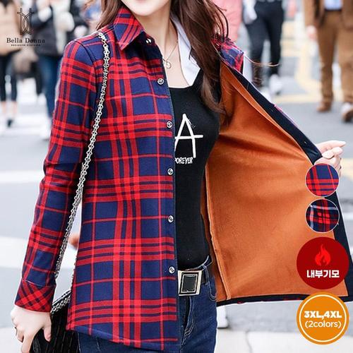 벨라도나 겨울 여성 클래식 윈터패션 심플핏 기모 체크셔츠 긴팔티셔츠 Bon-2603