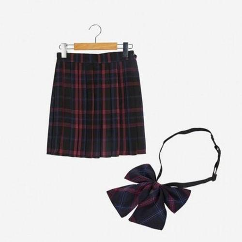 리본타이 네이비레드체크 학생복 교복 스커트 SET WD54808