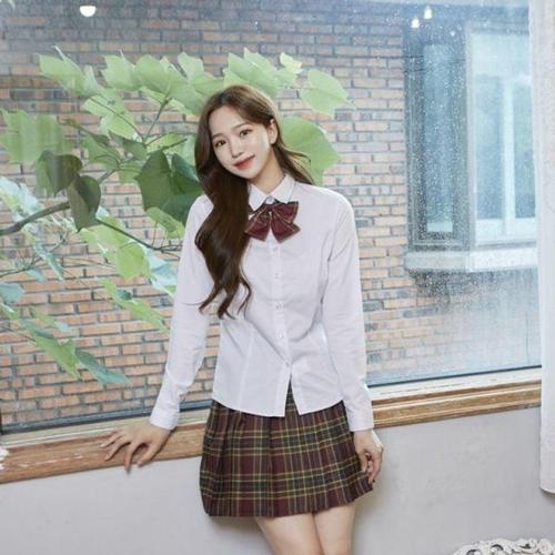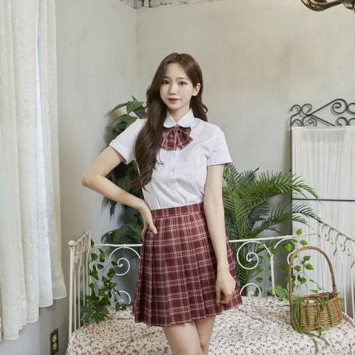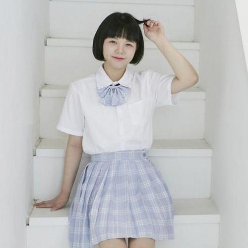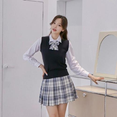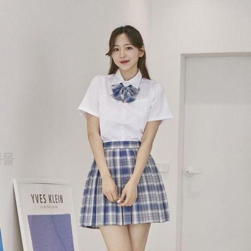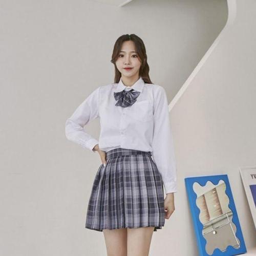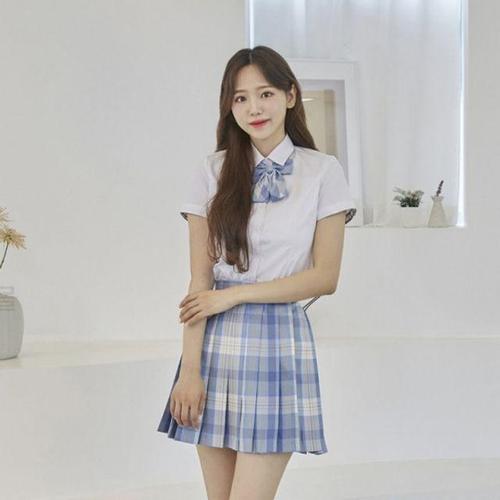 스카이블루체크 리본타이 교복 학생복 스커트 SET WD547BA